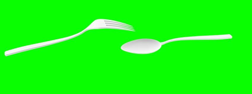 Minimalistic design of a kitchen spoon and fork for advertising purposes