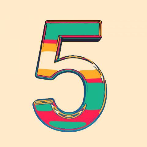 Numeral five 5 colored colorful illustration