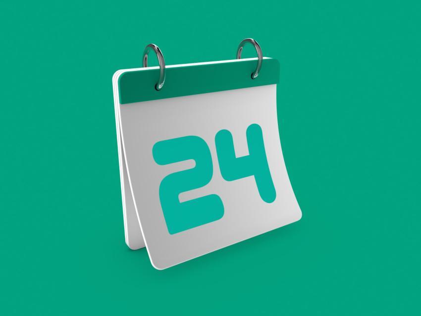 Stylish 3d Calendar day twenty fourth 24. 3d illustration, 3d rendering.