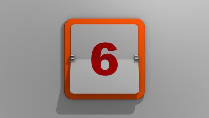 Stylish 3D rendering of a calendar depicting the sixth day. 3d illustration of 6 day of the week or holiday and events. Slide number six.