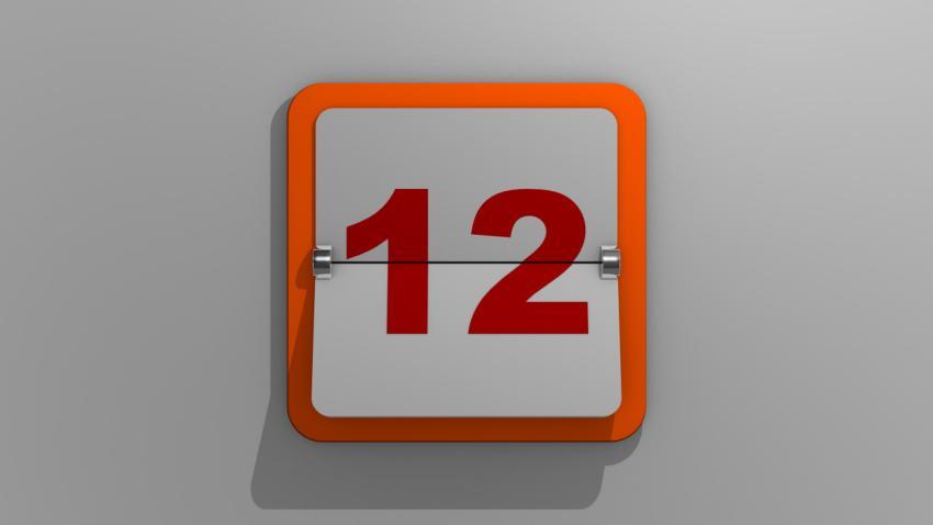 Stylish 3D rendering of a calendar depicting the twelfth day. 3d illustration of 12 day of the week or holiday and events. Slide number twelve.