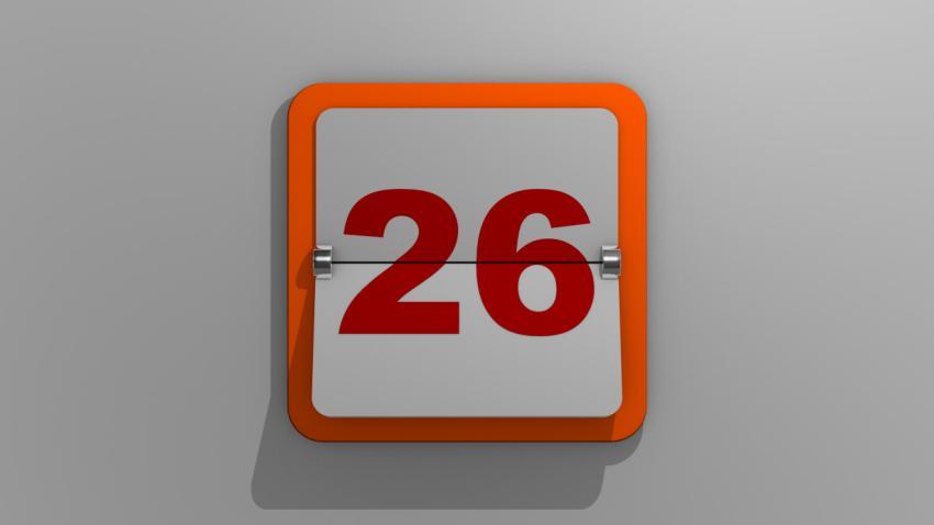 Stylish 3D rendering of a calendar depicting the twenty-sixth day. 3d illustration of the 26th day of the week or holiday and events. Slide number twenty six.