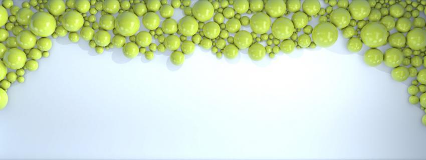 Green pearls of different sizes are scattered on a light blue background. Modern beautiful background