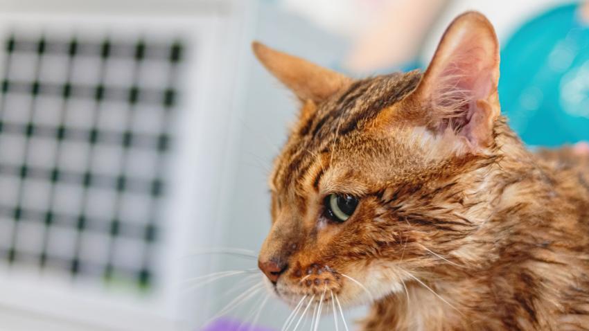 Leopard cat looking at camera at professional grooming service