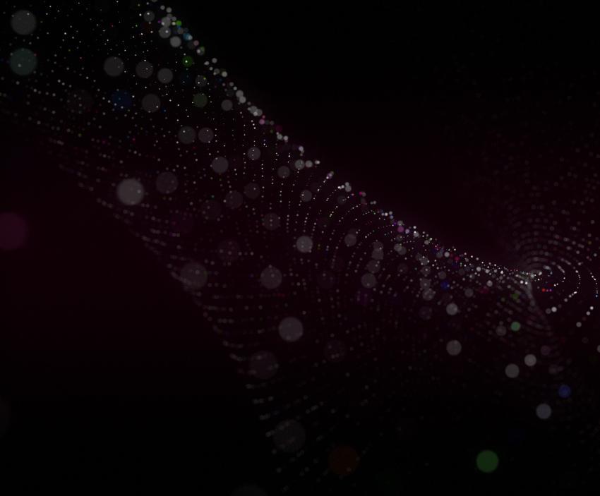 A beautiful background of particles creating an abstract wave going into the distance with a depth of field. 3D rendering, 3D illustration.