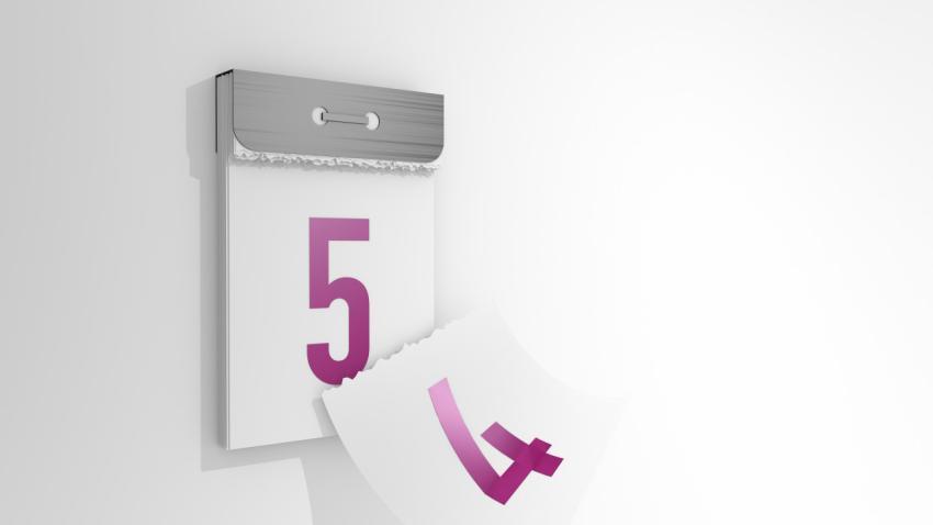 3d rendering of a minimalistic tear-off calendar. 3d illustration of changing days from 4 to 5. Falling page of the past day.