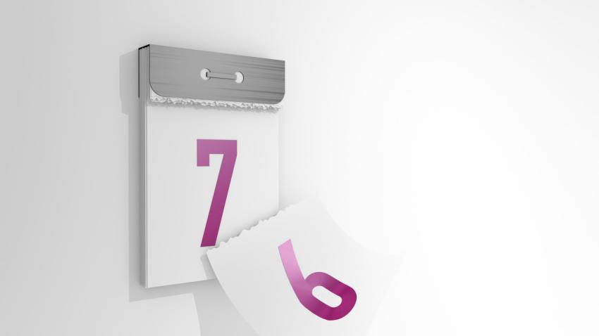 3d rendering of a minimalistic tear-off calendar. 3d illustration of changing days from 6 to 7. Falling page of the past day.