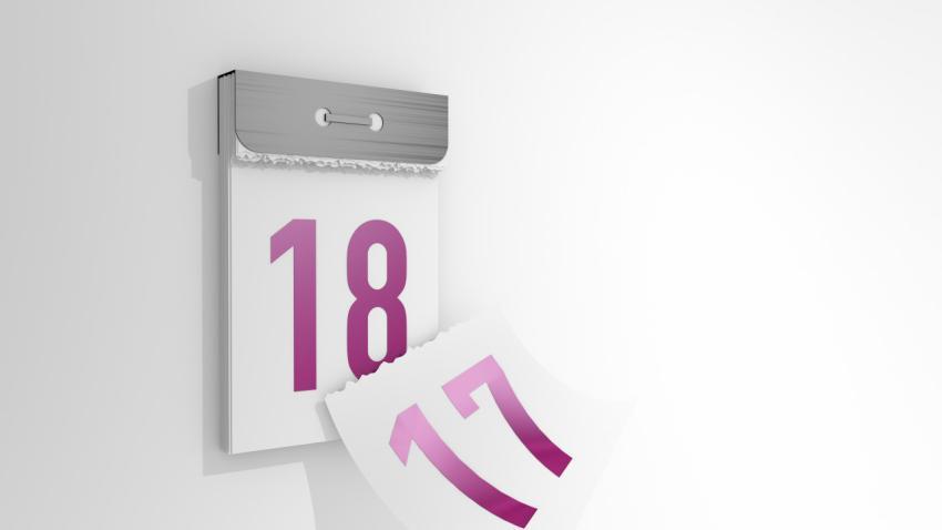 3d rendering of a minimalistic tear-off calendar. 3d illustration of changing days from 17 to 18. Falling page of the past day.