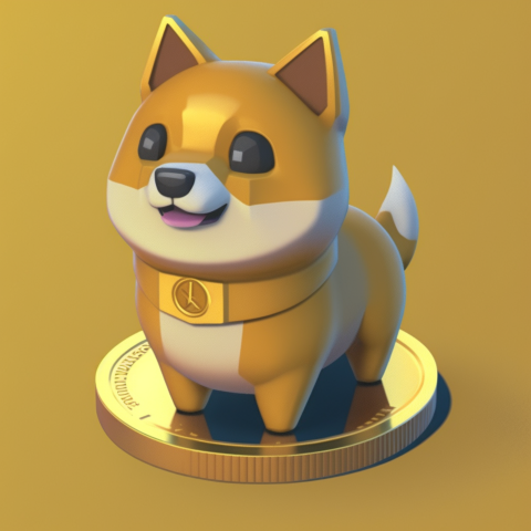 Cute little Doge standing on a Dogecoin