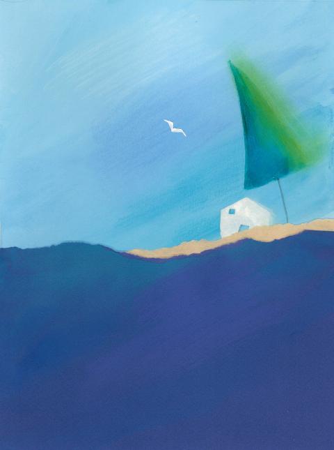 house sea seaside pine tree blue sky summer clear fresh sunny light seagull coast beach shore colorful bright illustration collage watercolor crayonsSimilar Photos