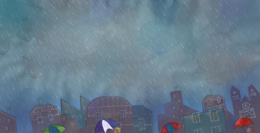 rain rainy weather cloudy dark storm autumn season fall umbrellas city town gloomy grey blue illustration collage watercolor crayons colorful meteorologySimilar Photos