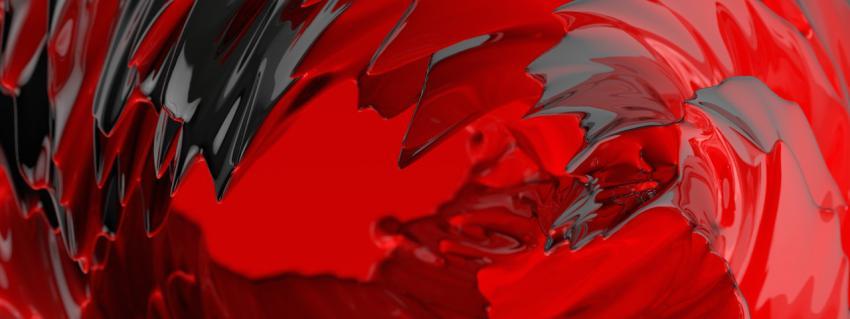 Beautiful red abstract liquid background with metallic reflection and light refraction. 3D illustration, 3D rendering.