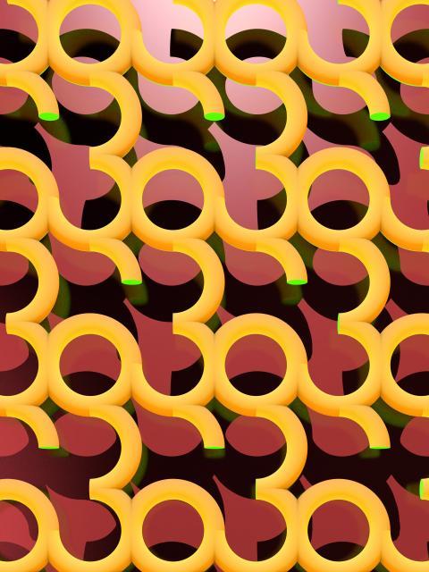 Background of ring-shaped yellow patterns. 3D illustration, 3D rendering.