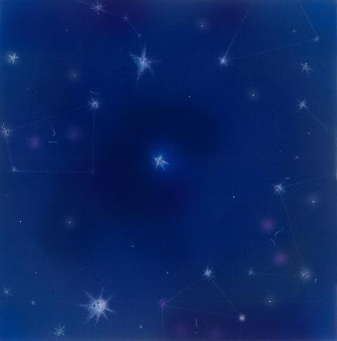little blue star in a deep blue universe with star constellations