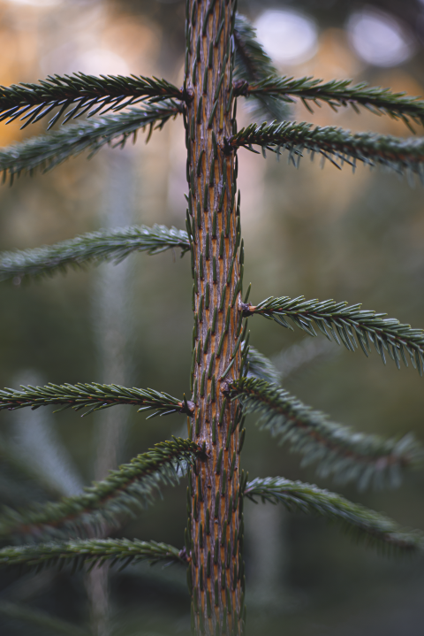 the bristly trunk of the Christmas tree