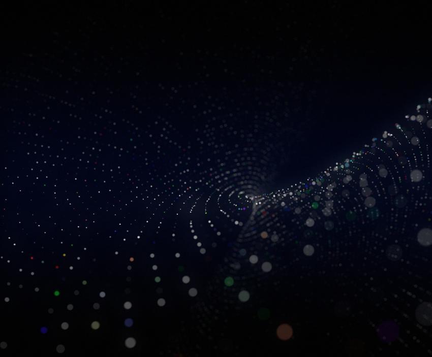 A beautiful background of particles creating an abstract wave going into the distance with a depth of field. 3D rendering, 3D illustration.