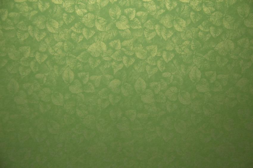 Green paper with drawn leaves arranged randomly. The pattern reflects light