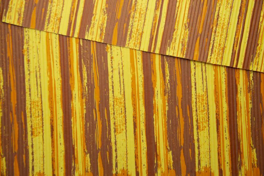 Two sheets of corrugated thick paper lie on top of each other. Sheets are painted in yellow-orange-cinnamon colors