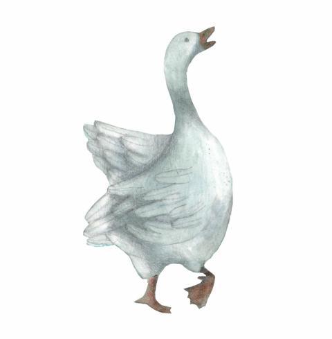 illustration in collage, watercolor and crayons of white goose