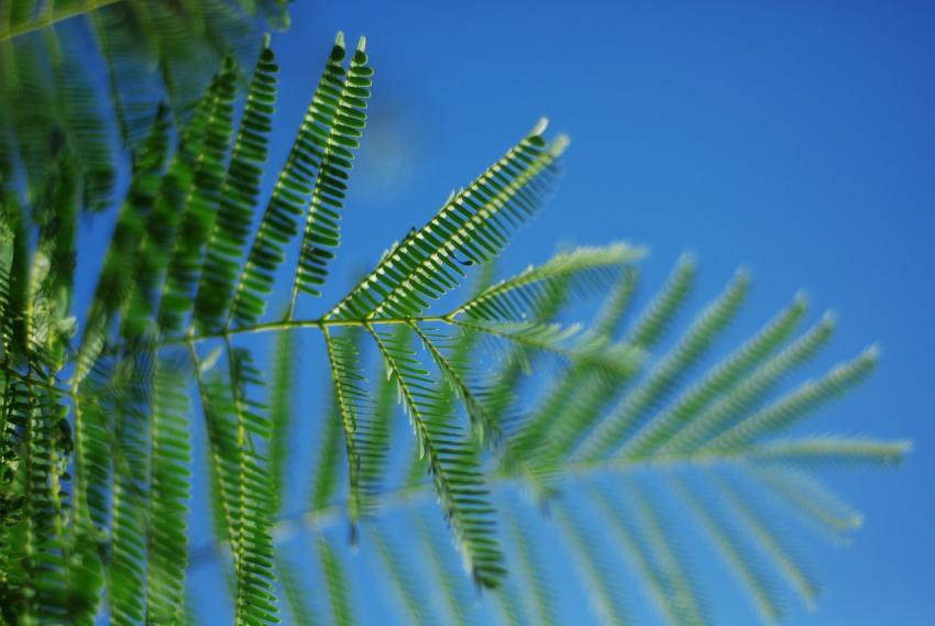 Green leaves on a blue background