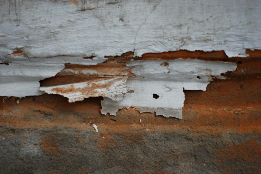 Texture of an old painted and not well-groomed wall many times with falling paint, spots and cracks