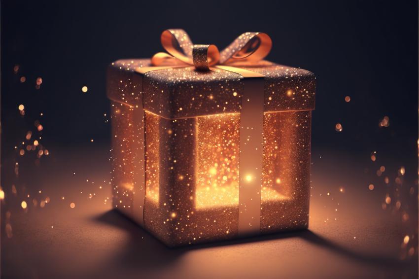 christmas gift birthday celebration present box ribbon gold package surprise holiday new anniversary festive gift box isolated luxury valentine light celebrate greeting shiny golden happy event magic magical shining sparkle xmas blurred illustration bright christmas present elegant glitter realistic star textured vibrant brightly beauty giftbox ai artificial intelligence _ai_generated_Similar Photos