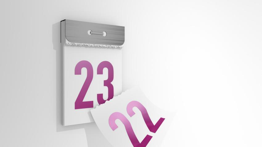 3d rendering of a minimalistic tear-off calendar. 3d illustration of changing days from 22 to 23. Falling page of the past day.
