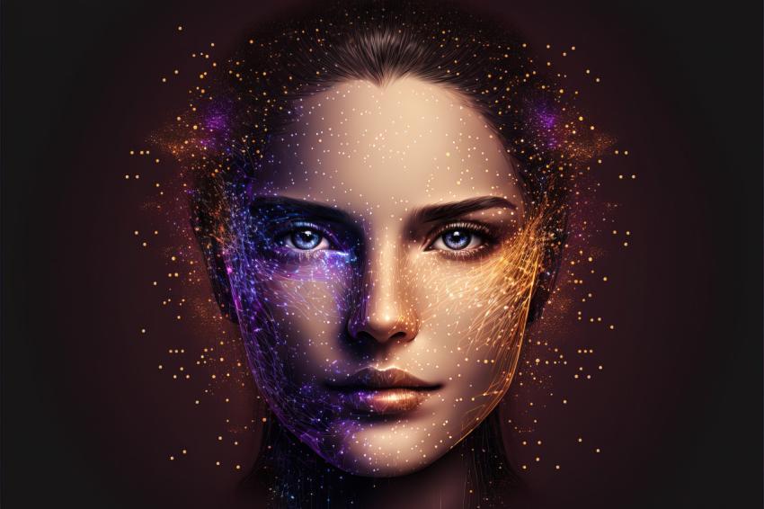 face technology futuristic head person digital particle human intelligence abstract illustration artificial science virtual cyberspace woman datum ai future portrait cyber robot art fantasy mind tech computer light creativity cyborg effect information girl learning network profile rendering structure simulation female artificial intelligence dot imagination innovation reality pixel identification internet onlineSimilar Photos