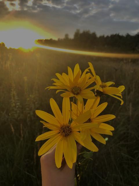 Fav photo, it can be yours >> Yellow flower in hand at sunset