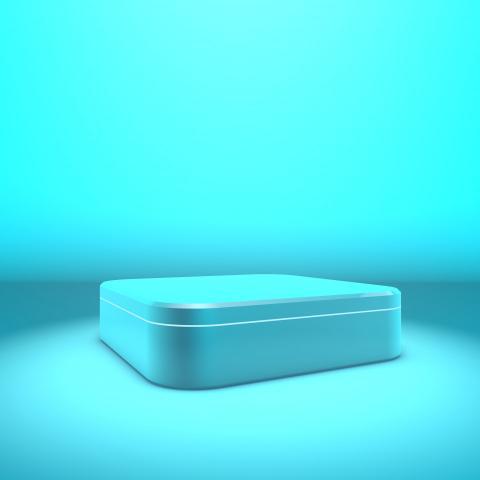 Podium, stage, pedestal. Trendy background with stand for product presentation. Minimalistic concept. Abstract blank layout in blue shades. 3D rendering