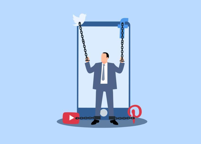 social media addiction prisoner chained smartphone controlled addicted facebook twitter pinterest youtube media technology online connected mental health physiology internet communicationSimilar Photos