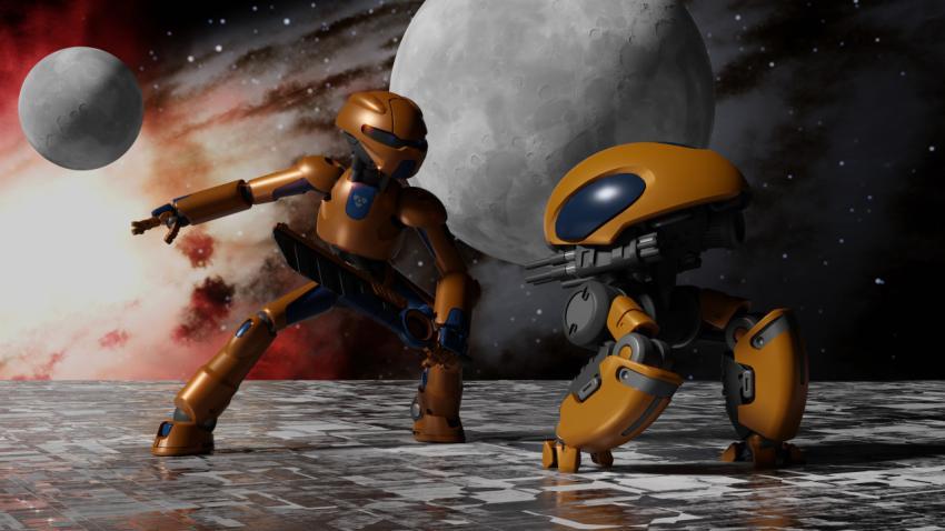 3D illustration of robots in the future.