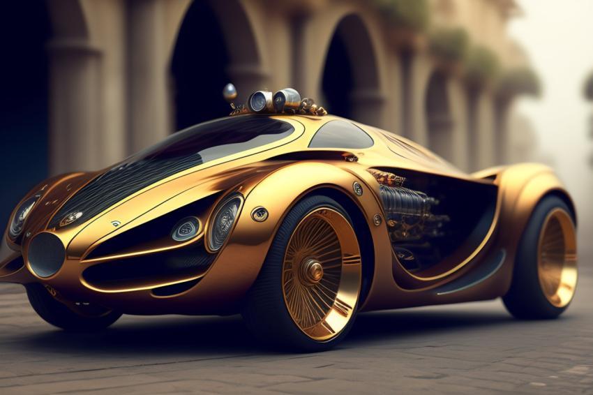biomechanical steampunk vehicle reminiscent of fast sportscar with robotic parts and (glowing) headlights parked in ancient lush palace, gothic and baroque, brutalist architecture, ultradetailed, creepy ambiance, fog, artgerm, giger, Intricate by Ellen Jewett and Josan Gonzalez and Giuseppe Arcimboldo