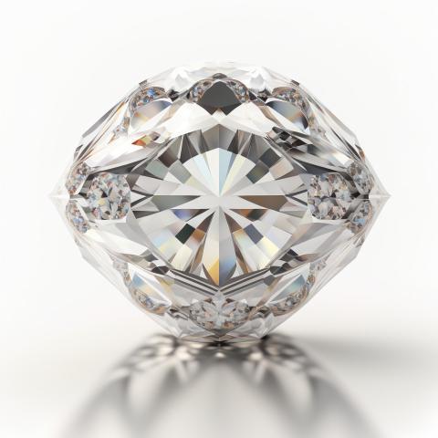 This is a close-up photorealistic illustration of a precious gemstone, such as a diamond, ruby, or sapphire, set against a clean white background. The illustration captures the intricate facets and natural hues of the gemstone, creating a sense of awe and wonder. The overall effect is stunning and elegant, highlighting the beauty of the natural world