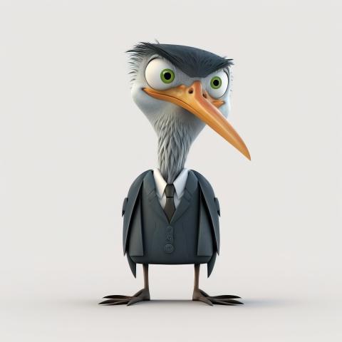 A cartoon heron dressed in a boss suit