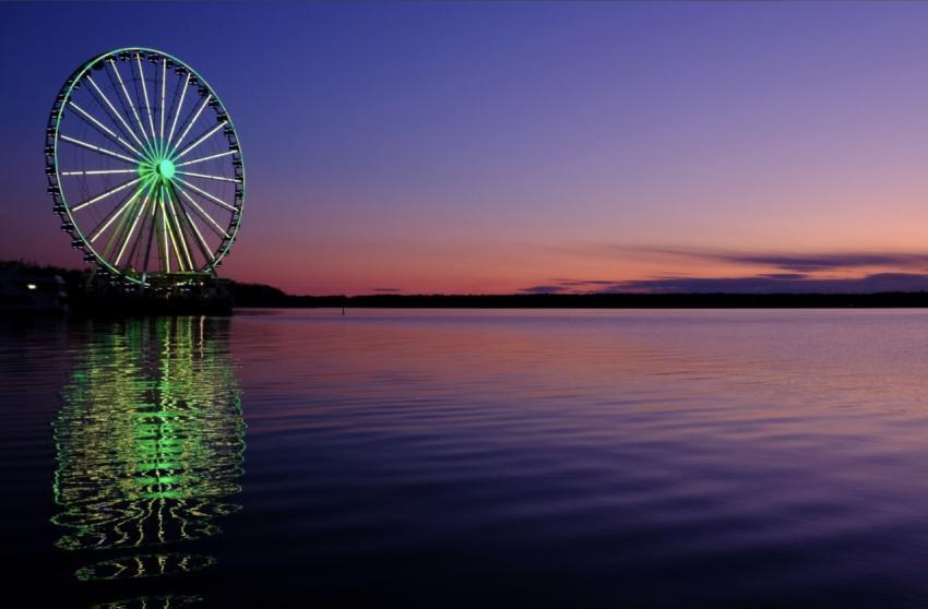beautiful view Ferris wheel water lake river sea evening lights height entertainment relaxation romanceSimilar Photos