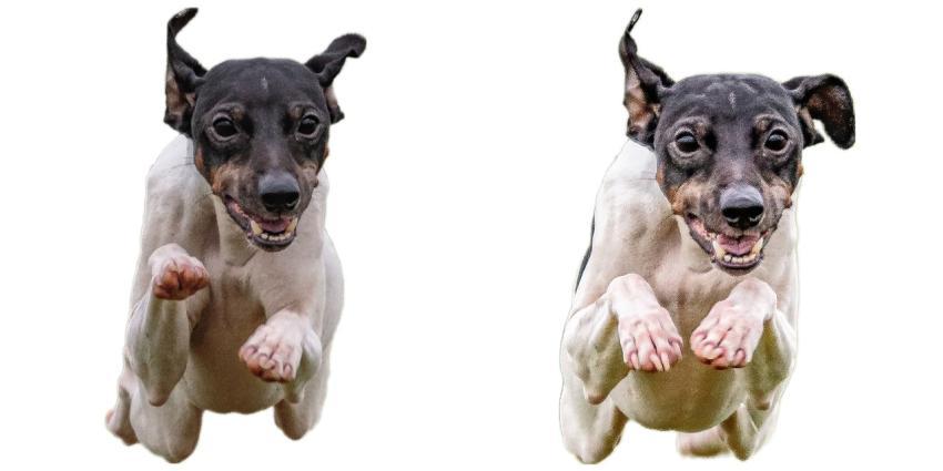 Japanese Terrier dog collage running catching hunting straight on camera isolated on white background at full speed on competition