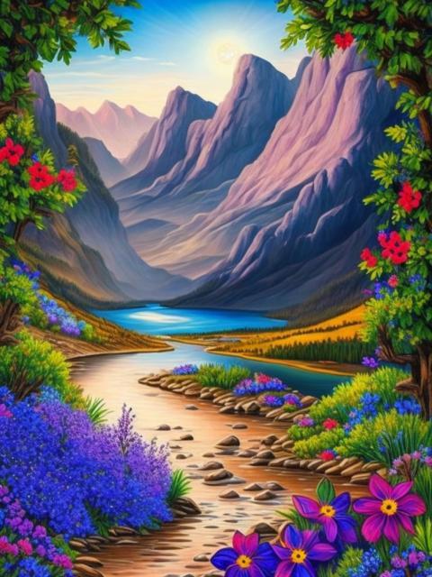 art digital art digital artistic lake flower landscape beautiful realistic view relaxation relax arts wallpaper nature mountain view morning sun mountain trendy followers background beautiful valley land spring dream scenery background nature landscape illustration purpleSimilar Photos