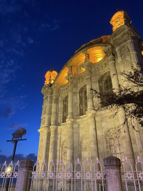 Wavy stepped architectural abstract background. 3D illustration, 3D rendering.