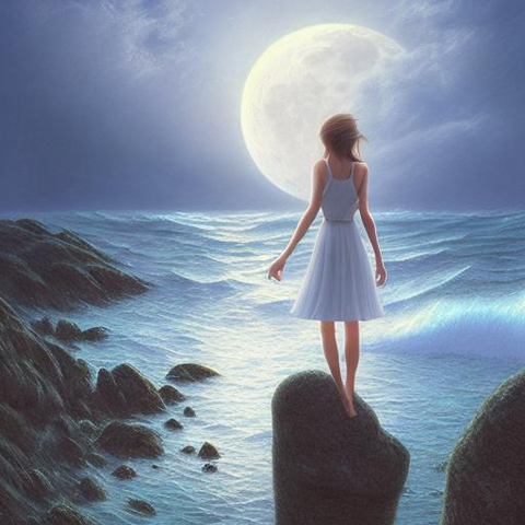 A robot with a girl's face looks at its reflection