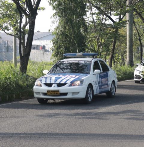 Police car in street of Indonesian