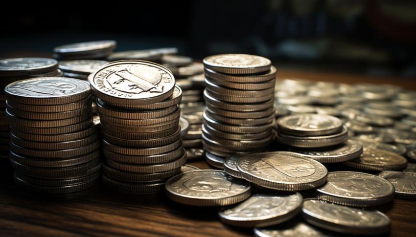 Open safe on a yellow background with coins spilling out. The accumulation of interest