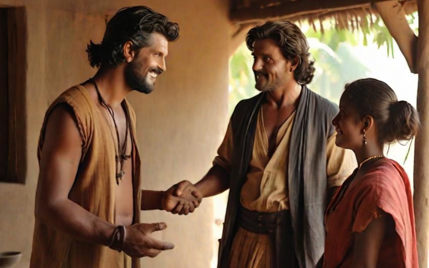 ai villager villagers happy momnet villagers happy momnt two man man woman talking chibi smile lashing village life kindness sister brother happiness meet sympathy handshake oldclothes old momentSimilar Photos