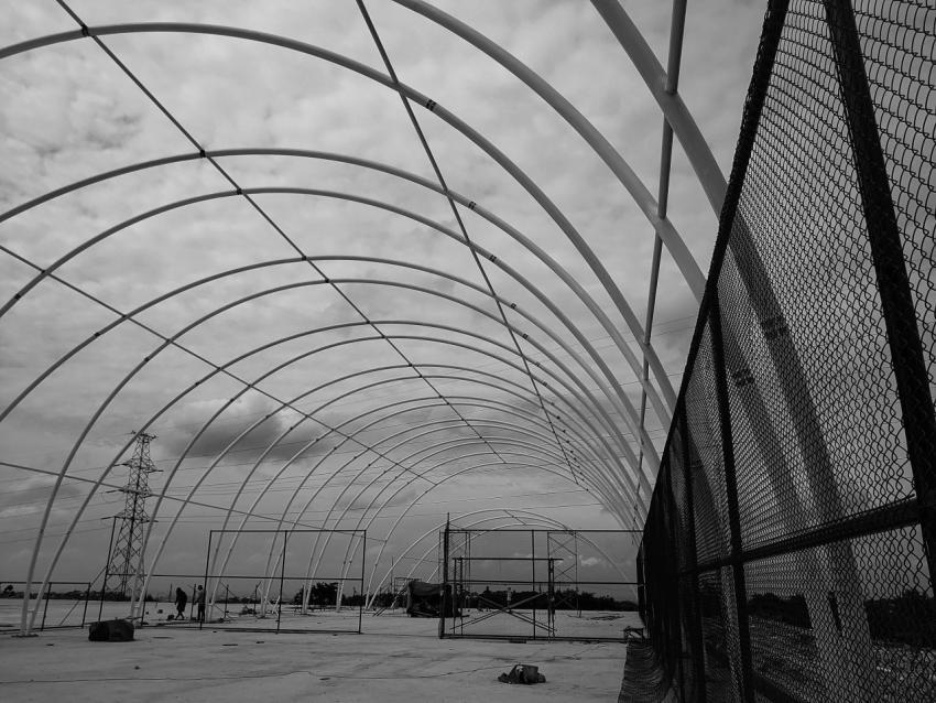 Wavy stepped architectural abstract background. 3D illustration, 3D rendering.