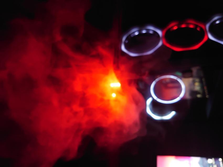 Digital color pixels or glitches in the form of square thin files are located at a distance in a bird's eye view with a blur effect