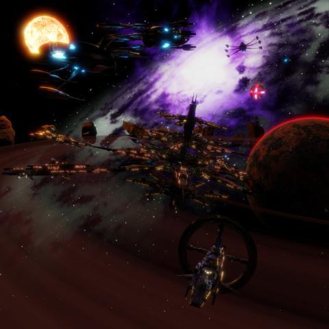 3D illustration of futuristic spaceships.