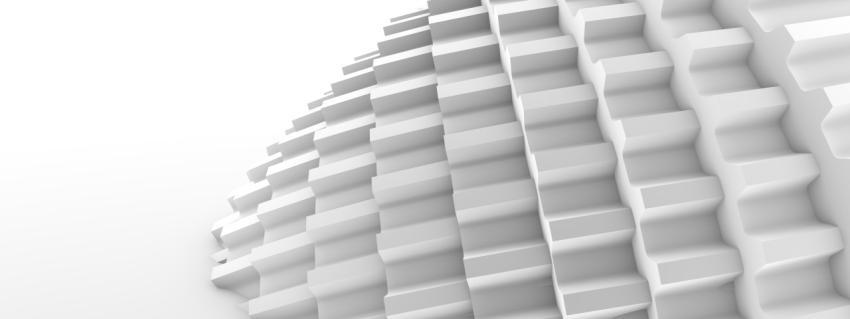 Unusual architectural abstraction. Stylish white background. Minimalistic design. 3D illustration, 3D rendering.