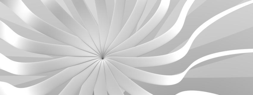 Minimalistic white abstraction of ribbons diverging from the center in all directions. 3D illustration, 3D rendering.