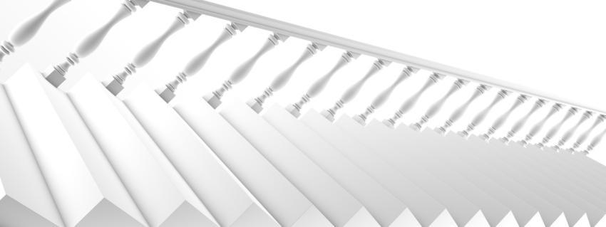 Inverted view of a staircase with a railing. Minimalistic architectural design. 3D illustration, 3D rendering.
