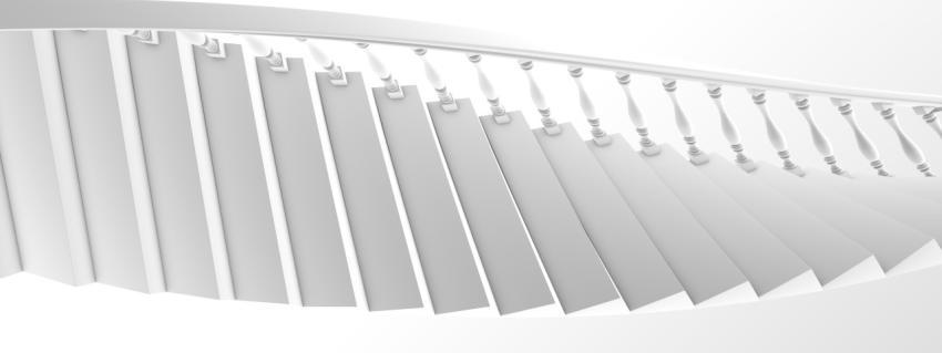 Futuristic spiral staircase with railings. Minimalistic architectural design. 3D illustration, 3D rendering.